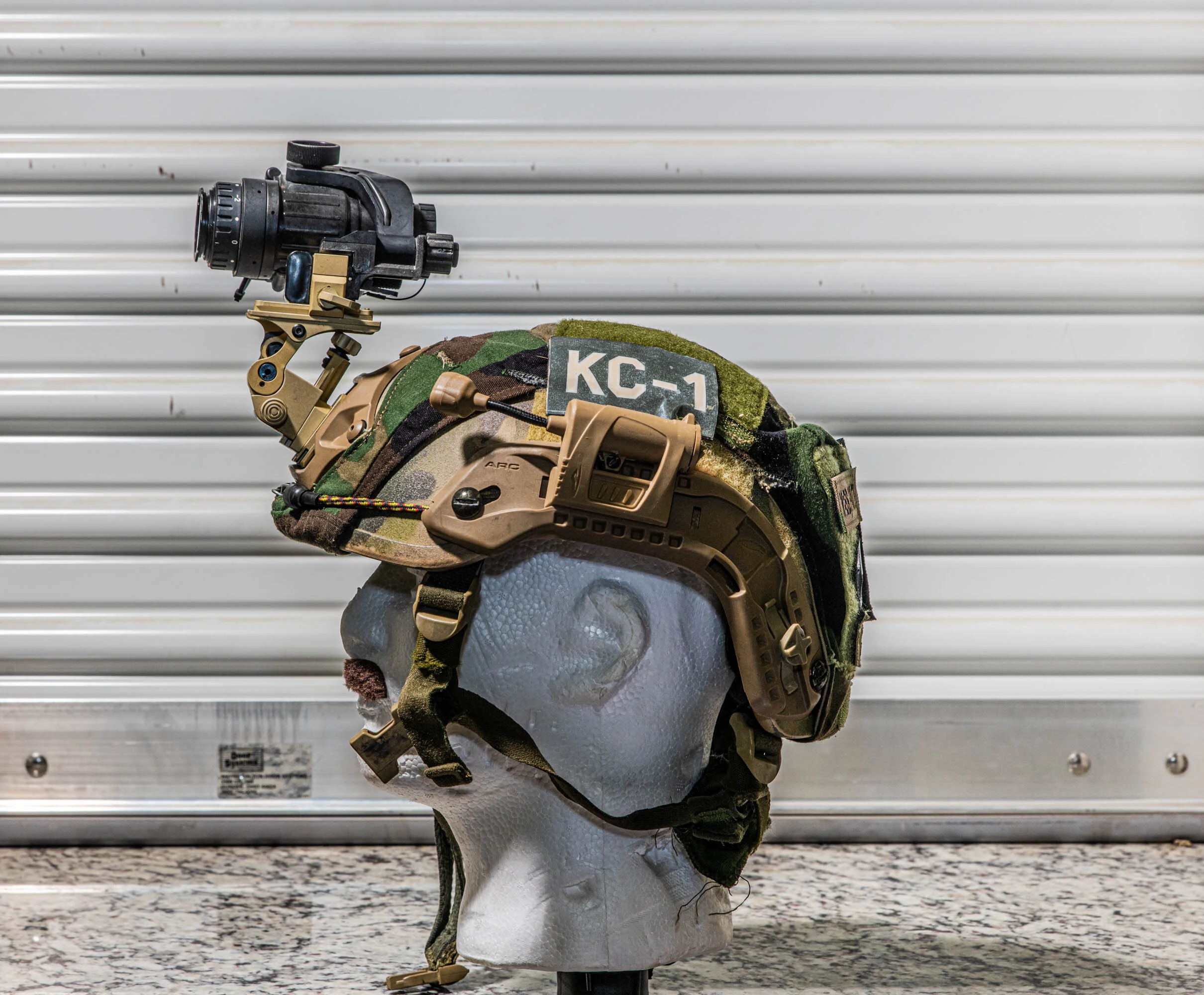 While shooting class photos at a Nightfighter 101 course put on by TNVC I grabbed all the student and instructor helmets and took shots of them to show off what sort of gear showed up. The night vision unit attached to each helmet is noted on the photos, and the mounts themselves are described below, thanks to Augee from TNVC.